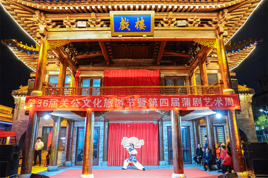 9月22日,山西省蒲剧艺术院(运城市文化艺术学校)戏曲系的学生在盬街戏楼表演蒲剧。