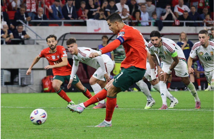 9月9日,葡萄牙队球员克·罗纳尔多在比赛中主罚点球命中。
