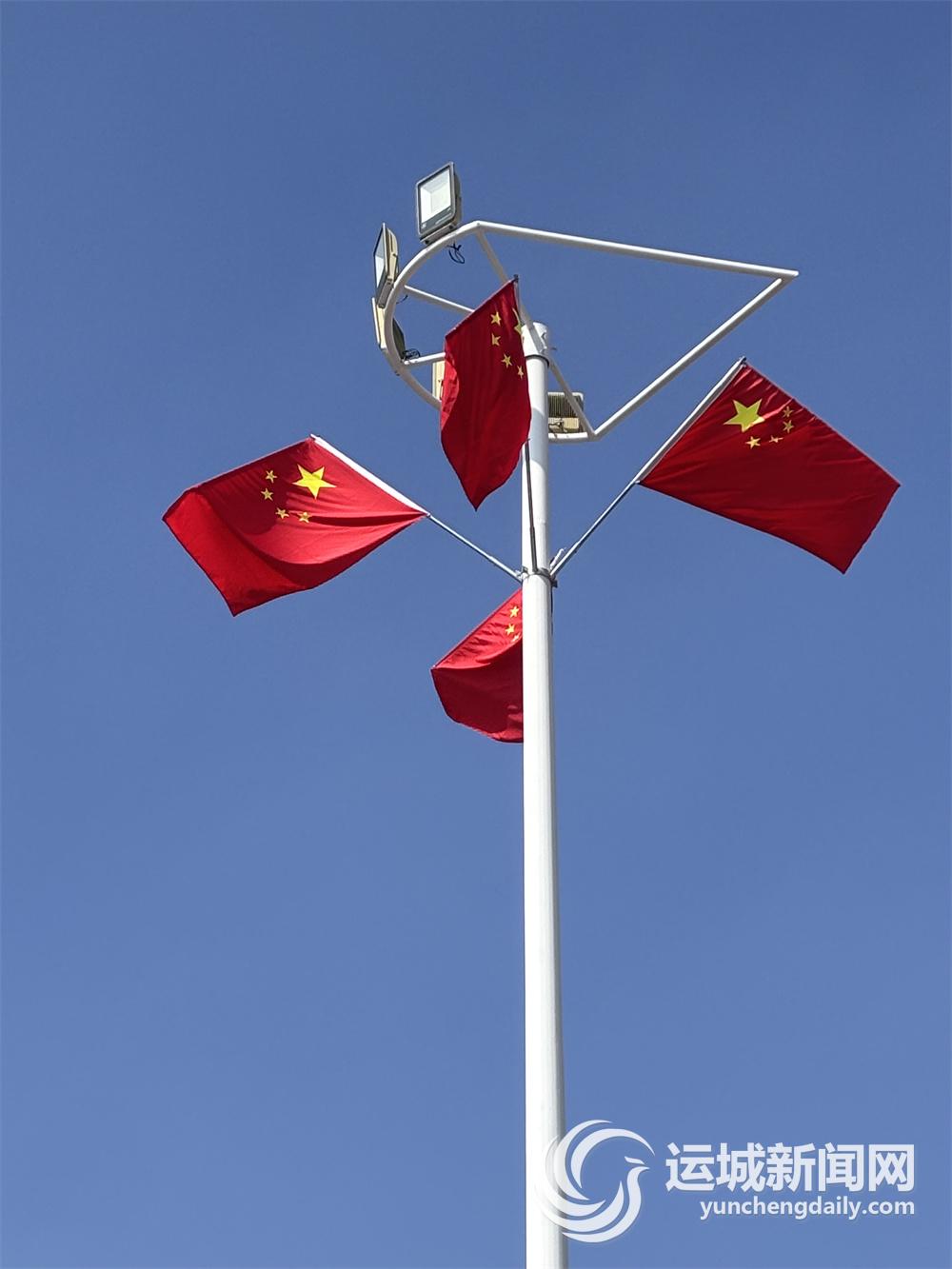 与往年不同,今年国旗悬挂范围进一步扩大,覆盖至舜帝街等运城盐湖国际机场、运城北站周边道路,市民和游客在出行与游览过程中,可共同感受家国同庆、幸福美好的浓郁氛围。