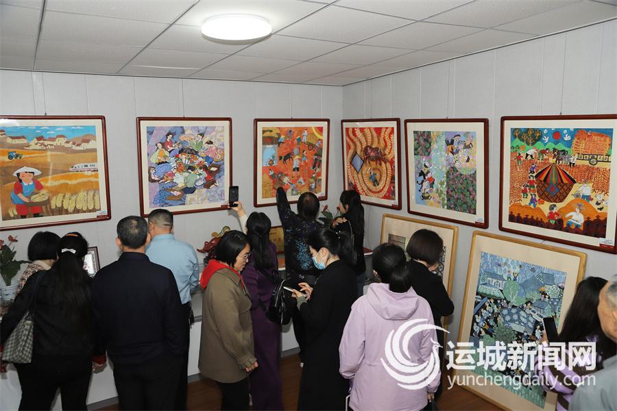 9月24日,在运城市高明晓美术工作室内,一幅幅展现农民丰收喜悦和生活气息的农民画作品吸引了众多市民和艺术爱好者前来观赏。