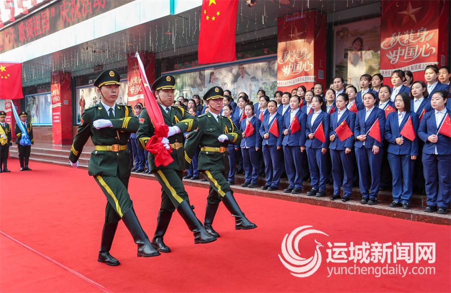 9月30日,盐湖区供销社系统800余名员工在运城购物中心举行升国旗仪式,同时用歌声、舞蹈等形式,表达对祖国母亲的祝福。 记者 茹雅 摄