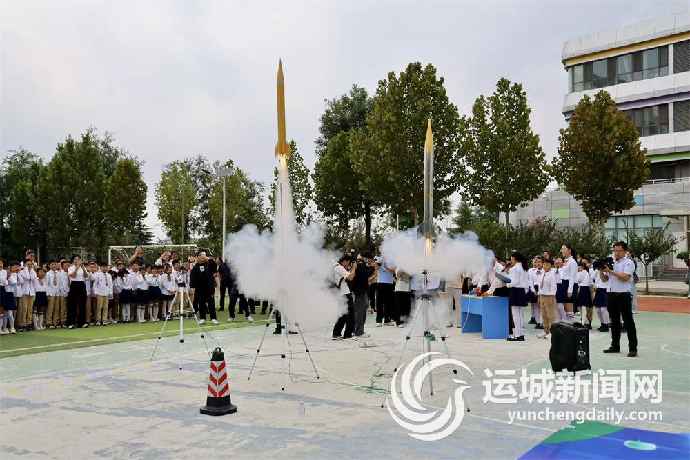 小火箭腾空而起直插云霄、凤凰无人机划过天空、机器狗跳出美妙的舞姿、科学实验精彩不断……近日,在盐湖区钱学森科技小学的操场上,孩子们欣赏了一场精彩的科学秀。当天,我市“全国科普月”系列活动拉开大幕,以精彩的科学活动为孩子们的成长赋能。