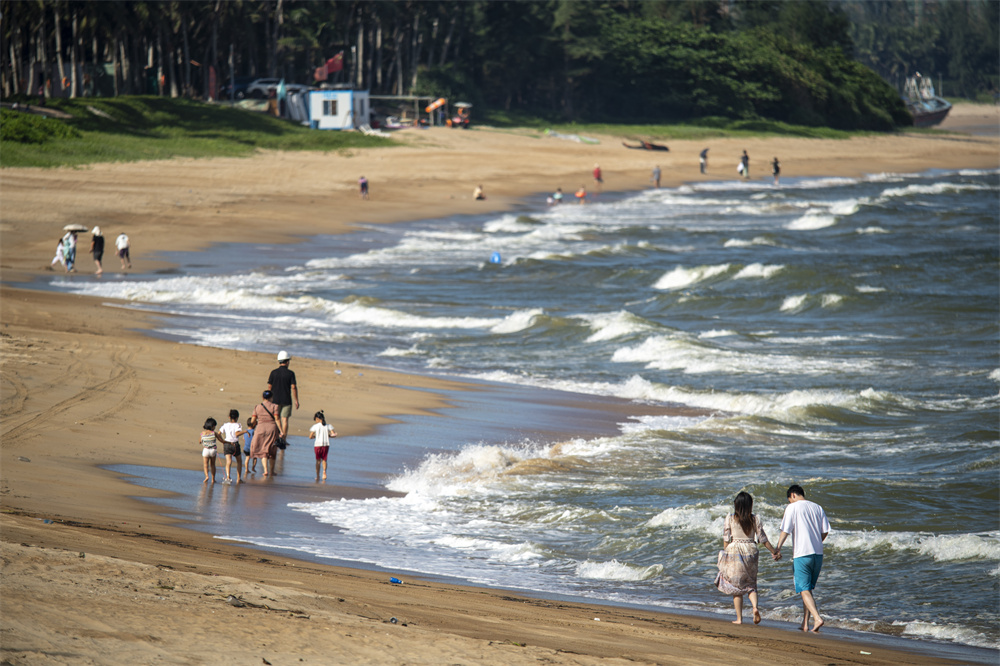 10月8日,游客在海南省琼海市博鳌海滨游玩。 新华社发(蒙钟德 摄)