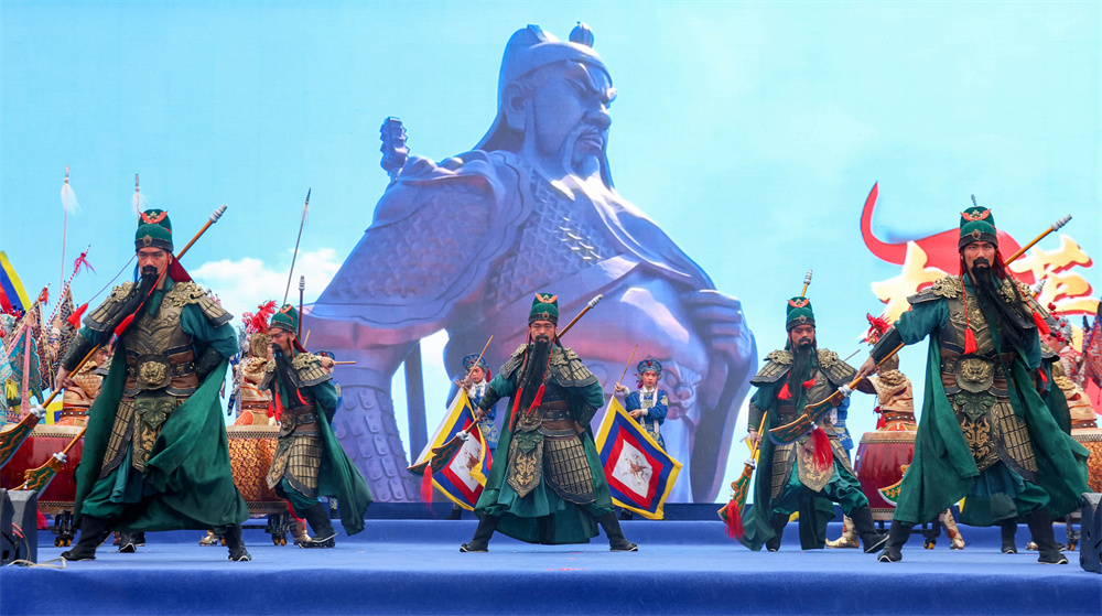 10月10日晚,演员在稷山国家板枣公园板枣博物馆演出沉浸式实景剧《稷颂》。