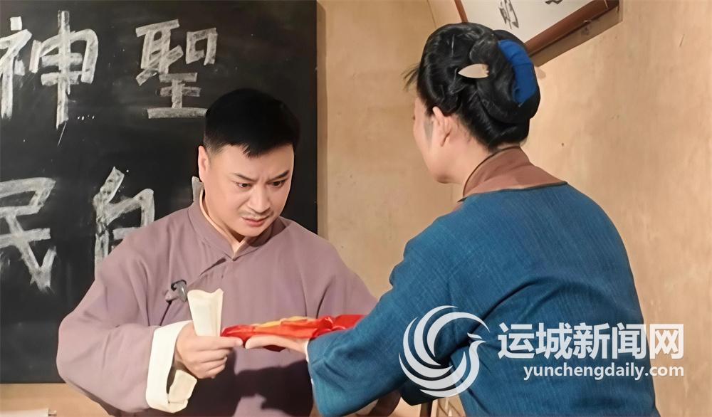 堆云洞,这座始建于元代的道教建筑群,青砖灰瓦间藏着厚重的红色过往。1928年,中共河东特委在此秘密成立,这里便成了“晋南革命摇篮”。嘉康杰等革命先辈曾藏身于此,借着三拐窑的曲折、暗室的隐蔽、老水井的掩护,在敌人眼皮底下传递情报、开展斗争,每一处砖石都浸染着热血,每一寸土地都镌刻着信仰。如今,当蒲剧演员身着戏服立于平民中学遗址前,凝视着鲜红的党旗,真实的革命场景仿佛穿越数十年,将演员与先辈的精神紧紧相连,让镜头里的每一个眼神、每一个动作都满含敬意与共情,仿佛当年的热血故事正被重新复刻。