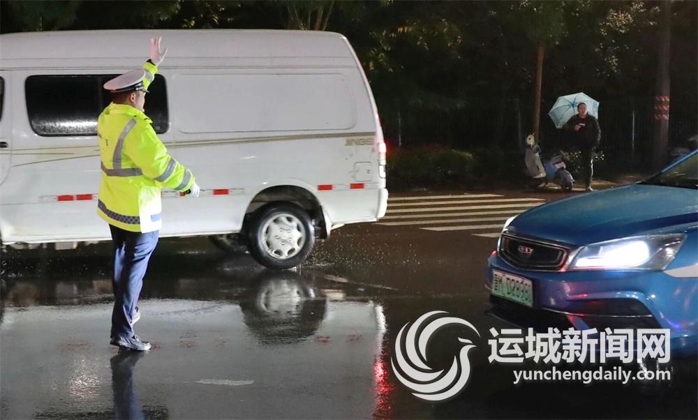 为保障雨天道路交通安全、有序、畅通,盐湖交警闻“雨”而动,迅速启动恶劣天气应急预案,加强路面巡逻与管控力度,并在重点路口、路段增派执勤人员,切实提高见警率与管事率,全力在风雨中为群众撑起“平安伞”。