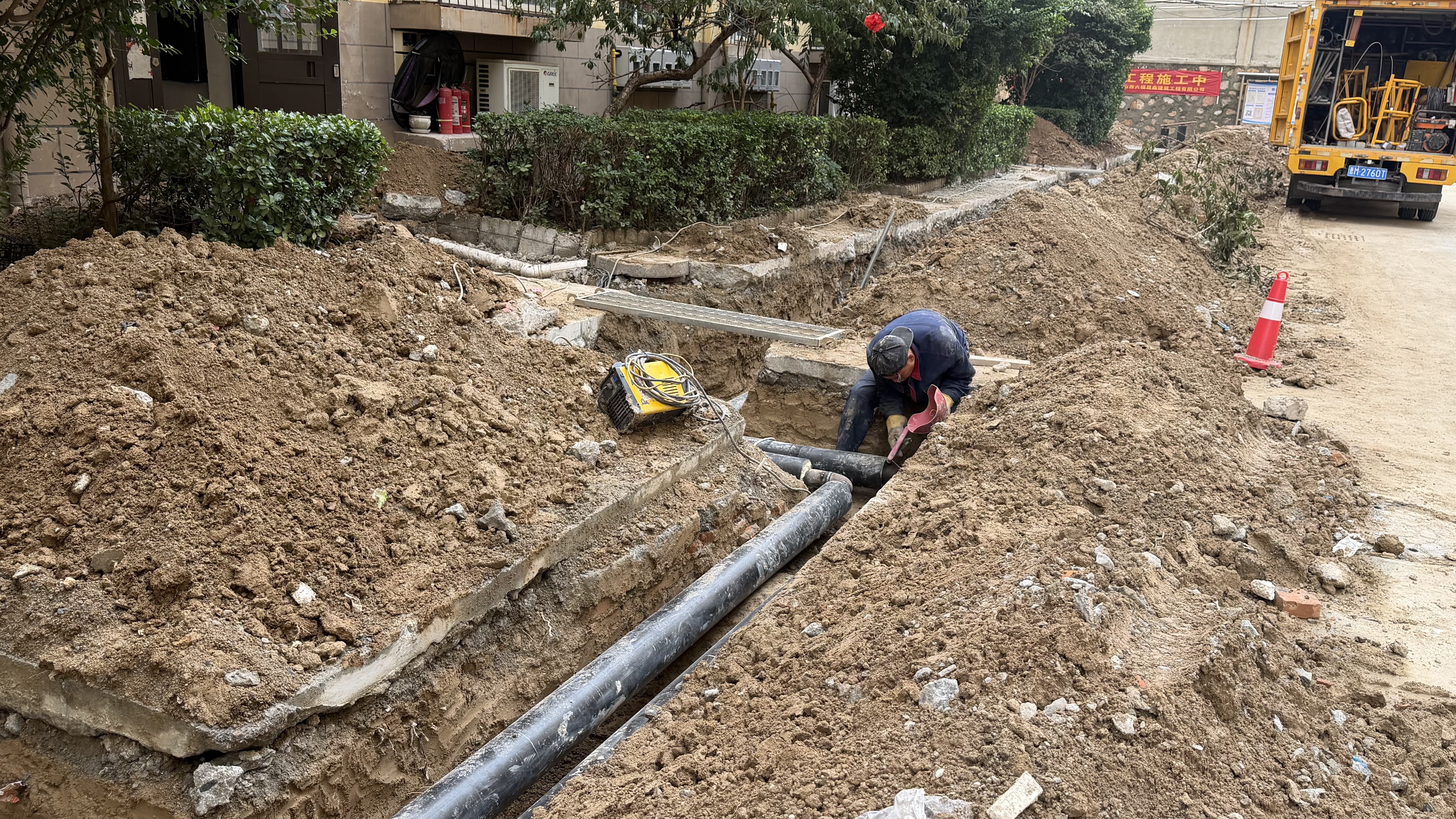 市热力有限公司在了解居民诉求后,迅速开展专题调研。今年7月以来,该公司多次联合社区、居委会及居民代表召开现场协调会,共商管网接入方案。面对老城区地形复杂、管网错综等困难,各方通力协作,精心制订施工方案。8月初,该工程正式启动。