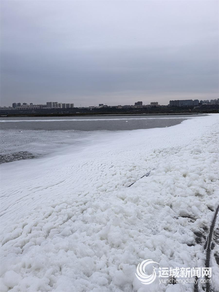 近日,运城盐湖再次开启“梦幻模式”,湖面翻腾起的洁白泡沫溢出岸堤,宛如白色“泡泡海”,蔚为壮观。