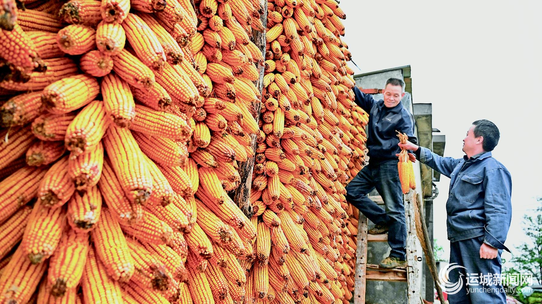 10月21日,垣曲县长直乡长直村村民将收获的玉米上架晾晒。