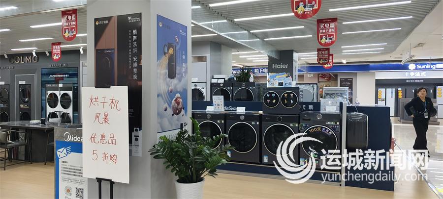 走进运城苏宁易购的家电卖场,烘干类产品专区人气颇旺。小天鹅、海尔、COLMO等品牌的烘干机、洗烘一体机被摆放在显眼位置,“烘干机风暴 优惠品5折购”的促销牌格外醒目。