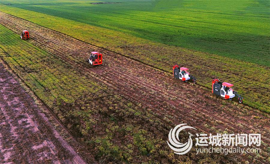 近日,万荣县裴庄镇黄河滩花生地里,村民们抓住天气晴好的有利时机,抢收、装车、转运,田间地头到处一派忙碌的丰收景象。
