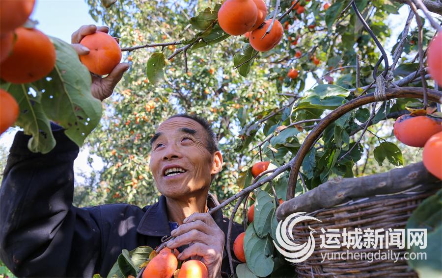 10月21日,夏县庙前镇虎庙岭上,红彤彤的柿子挂满枝头。村民们趁着晴好天气,忙着采摘柿子,田间地头处处洋溢着丰收的喜悦。