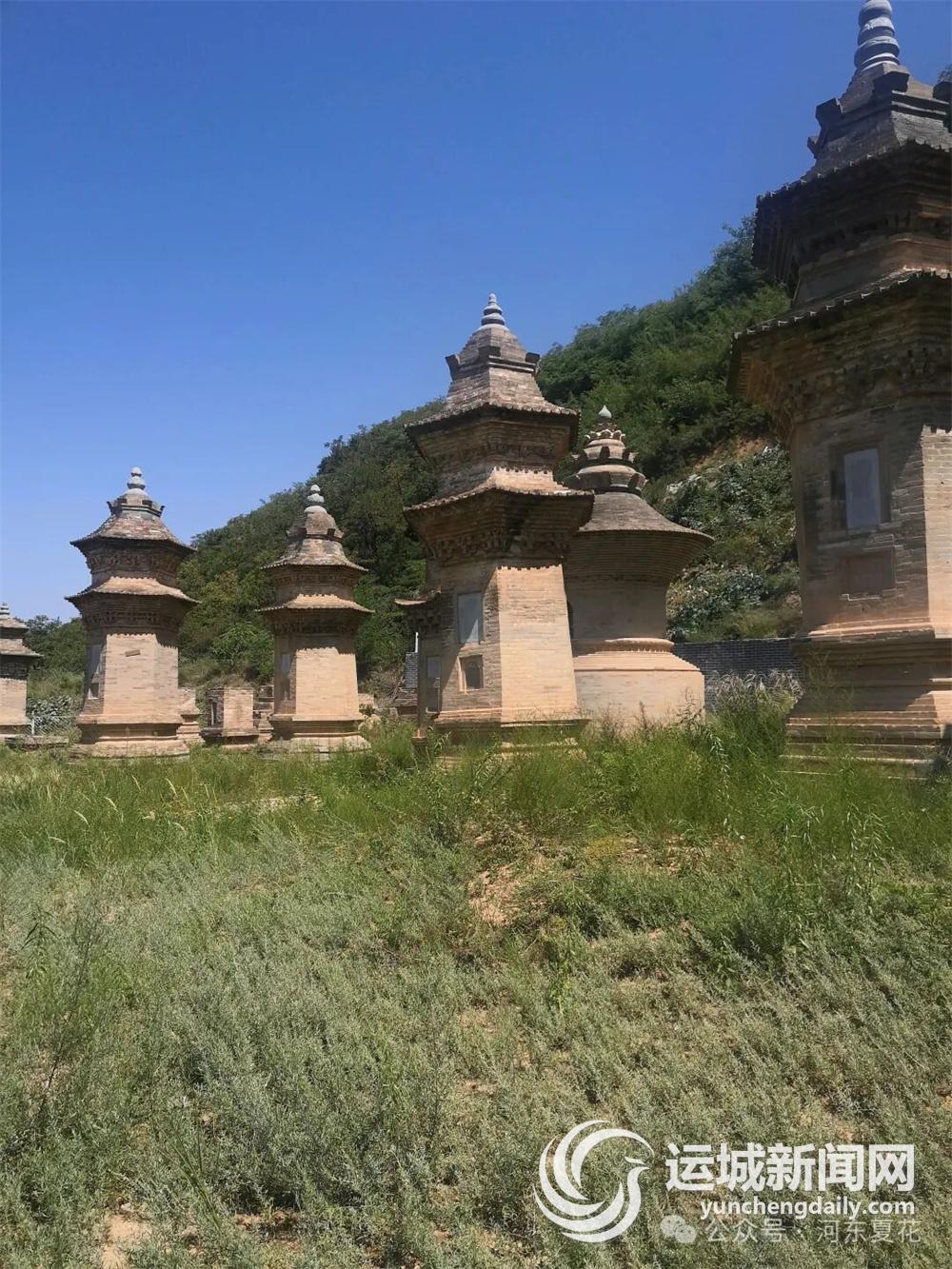 论历史,栖岩寺自北朝末年的灵居寺算起,已有1400余年,可与河南少林寺比肩。少林寺论个头是比栖岩寺高大了许多,然目前全国能和栖岩寺塔群相较者,还未听说。远在北周时,栖岩寺已是“河东诸寺胜赏之最”,其左侧山梁后的万固寺虽同是全国重点文物保护单位,山门匾额标示“中条第一禅林”,实则论规模远不及栖岩寺。唐时已有“北有五台山,南有栖岩寺”之说,足见当时栖岩寺的声名影响。至于寺院后来的衰败,想必是明朝那场“天塌蒲州”的8级地震造成的。那场灾难,毁了大雄宝殿及诸多建筑,幸有五级舍利佛塔和塔群留存,彰显着栖岩寺的来龙去脉和昔日盛况。