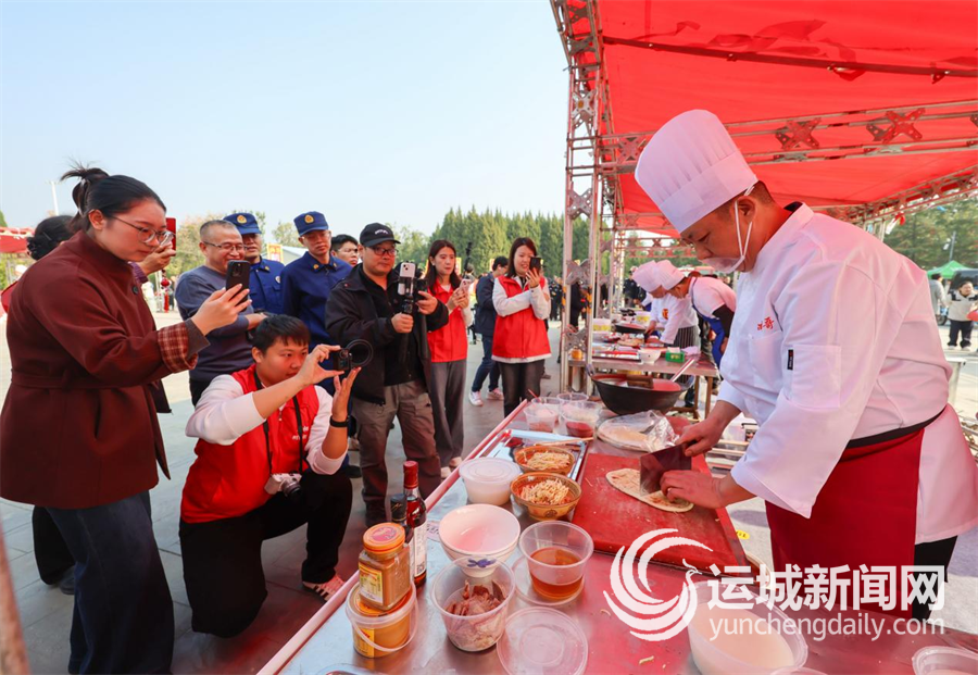 羊汤奶白浸饼丝,古法鲜香飘河东。为进一步激活打造文商融合旅游热点门户活力,10月28日,盐湖区第二届北相胡卜美食交流赛在舜帝德孝文化旅游景区火热启幕,来自北相镇的17家胡卜经营商户以厨艺竞技为桥梁切磋技艺,以百年美味为媒介擦亮地方名片。