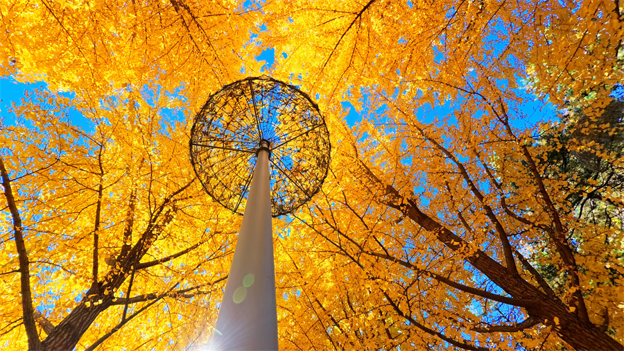 11月2日在北京奥林匹克公园拍摄的银杏林秋景。