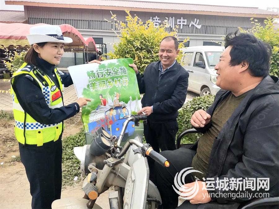 近日,万荣县公安局交通管理大队组织民辅警深入周边村庄开展交通安全宣传活动,筑牢农忙时节农村地区交通安全防线。