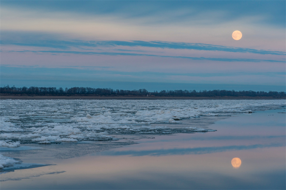 11月5日在黑龙江嘉荫段拍摄的“超级月亮”(无人机照片)。