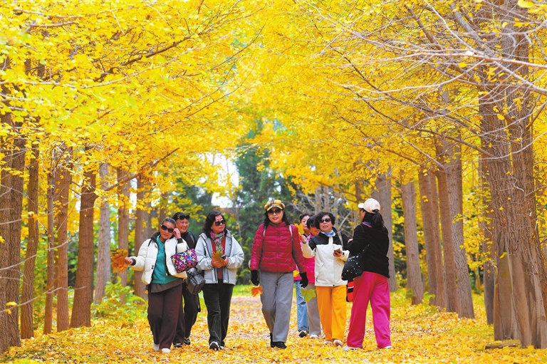 初冬时节,翼城县唐兴镇古城社区的银杏苑内,上千株银杏树披上金色纱衣,绚丽迷人。暖黄色的银杏叶铺满地面,形成一条“金色”走廊,远远看去,像一幅浓墨重彩的油画,吸引众多游客赏景、拍照、打卡。