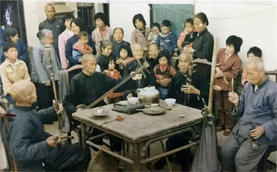 月影西斜,唱到《韩湘子归山》的流水板,扬琴声忽如汾河涨潮。盲艺人脖颈青筋暴起,假声拖腔骤起。木鱼急雨般追着唱词,恍惚间仿佛看见韩湘子踏着琴音登上中条山,道袍鼓荡如帆。满场喝彩声里,笔者忽然明白为何这围桌而坐的“盲人说书”,能在晋南传唱200多个春秋。