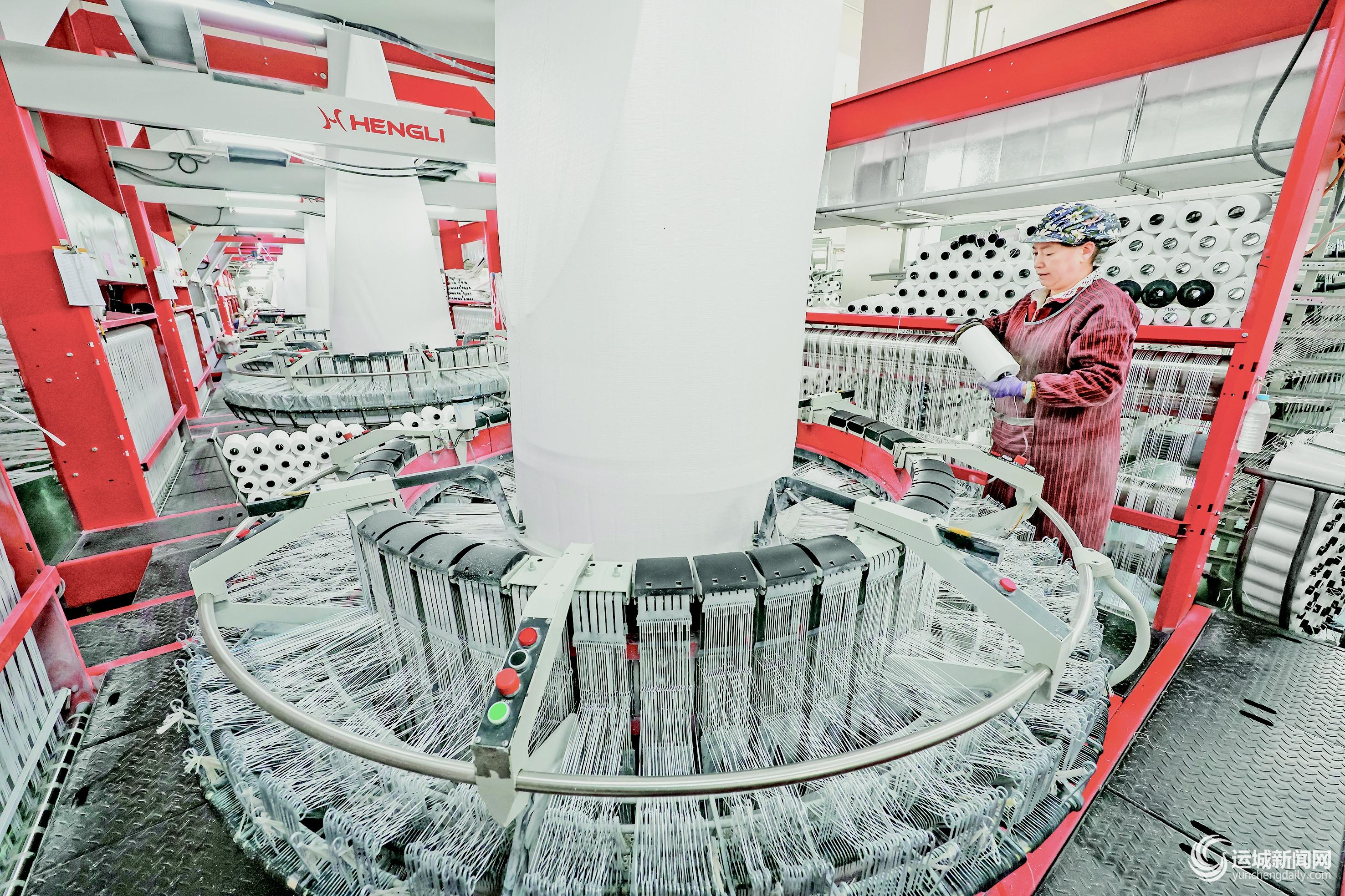 11月11日,我市一家包装制品公司生产车间内,工人在赶制集装袋订单产品。
