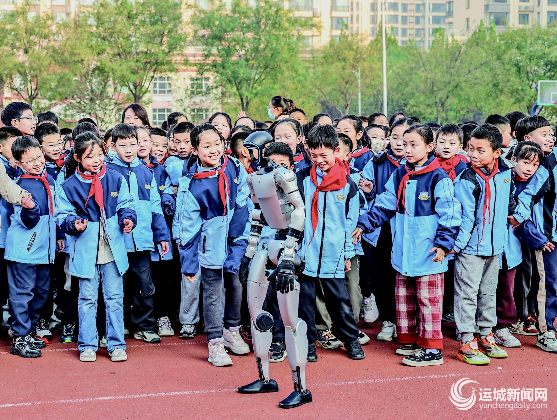 11月12日,盐湖区魏风小学校园科技节,孩子们在观看机器人表演。