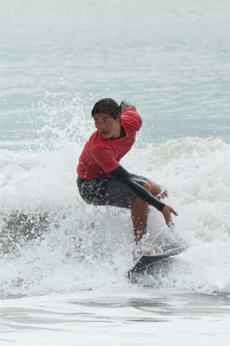 当日,第十五届全国运动会冲浪项目男子短板第一轮比赛在广东南澳举行。