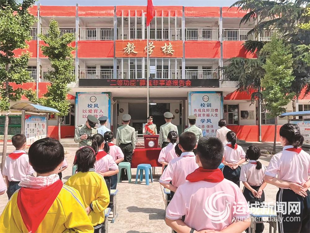 “从韩叔叔身上,我们看到了作为一名人民解放军战士的伟大精神,他的精神将鼓励着我在以后的学习中,不怕困难,顽强拼搏,将来成为最美的自己。”这是该校学生刘子怡听了芮城籍现役军人、二等功臣薛童非的故事后在日记中写的感想。