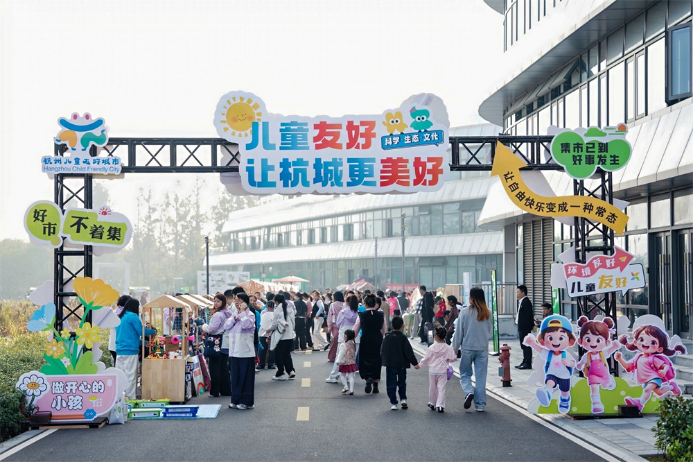 在浙江省杭州市富阳区,家长带着孩子参加“儿童友好,让杭城更美好”主题活动。