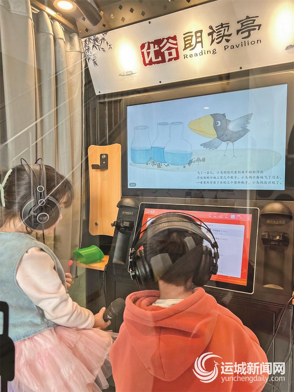 河东书房广电馆内朗读亭的小读者 郭 璇 摄