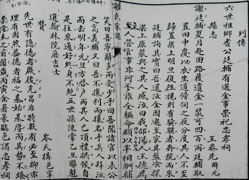查阅云冲村《谢氏家谱》,这段“田中拾金”的故事被郑重写在卷首。族谱编修者的选择,彰显了这个家族最愿意传达给后人的意图,是一脉家风的源头。
