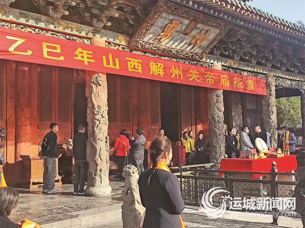 运城晚报讯(记者 李婉玉 赵泽艳 荆毅萍)千秋忠义,一叶承魂。11月30日(农历十月十一),由运城市解州关帝庙文物保护所主办、山西下关沱茶文化有限责任公司承办的乙巳年解州关帝祖庙茶祭活动如期举行,海内外关帝宫庙代表、关公文化协会成员及品茶爱好者共160余人齐聚祖庙,以茶香为纽带,传扬关公文化、赓续忠义精神。
