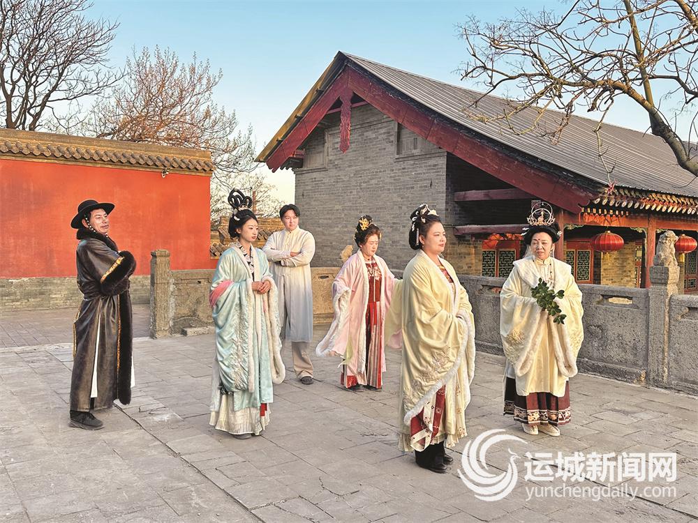 而镜头之外,工作人员正紧张忙碌着,灯光师调整光线捕捉古建筑的细节之美,摄影师扛着机器追逐演员的每一个精彩瞬间,道具组精心摆放的盐雕摆件、茶香器具,无不透着浓浓的运城本土特色。“该剧演员也多是园区商户和工作人员。”导演在拍摄间隙介绍,“我们要让观众追剧时,像亲身走进了池神庙,切实感受运城的历史底蕴与人文气息。”