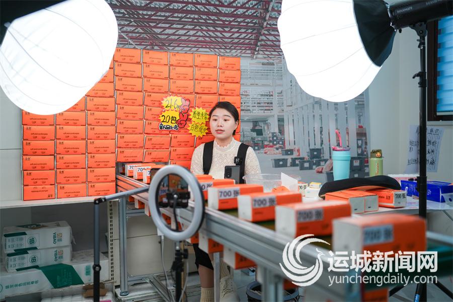 山西宸星电子商务有限公司内,主播在售卖纸巾。