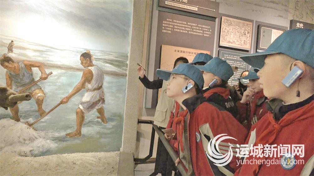 展览以清晰的图表与场景复原,系统呈现运城盐业的发展脉络。从先秦时期“自然结晶、集工捞采”的原始方式,到隋唐成熟完备的“五步产盐法”;从关系国计民生的盐政制度,到因盐而兴的城镇变迁……历史图景徐徐铺展,五千年的盐文化从书册文字变成可触可感的文明印记,让学生们切身感受到古人智慧与盐湖文化的深厚底蕴。