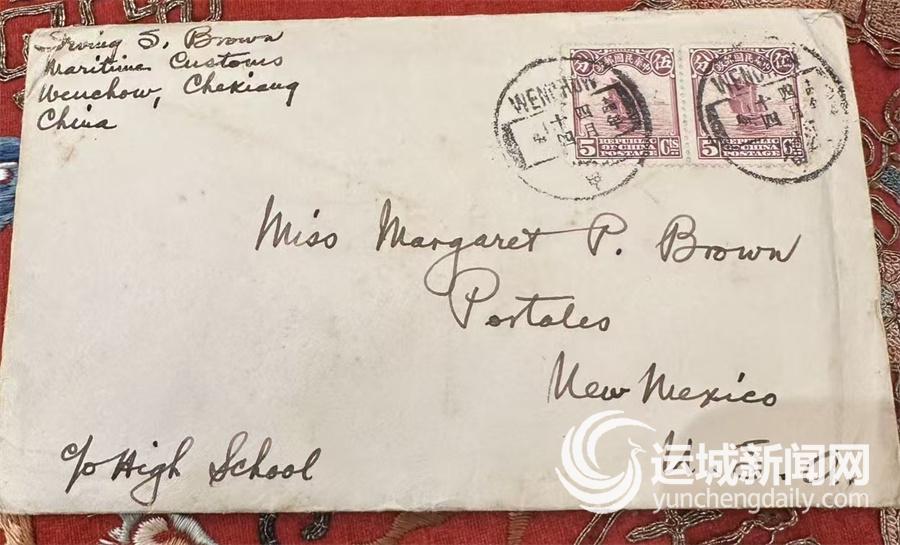 1925年,一封英文手写书信,从温州漂洋过海,抵达美国新墨西哥州波塔利斯市。如今,泛黄的信封上,邮票依然清晰,记录着它的漫长旅程。寄信人是在温州海关工作的美国人欧文·S·布朗,收信人玛格丽·P·布朗我们推测应是其家人。
