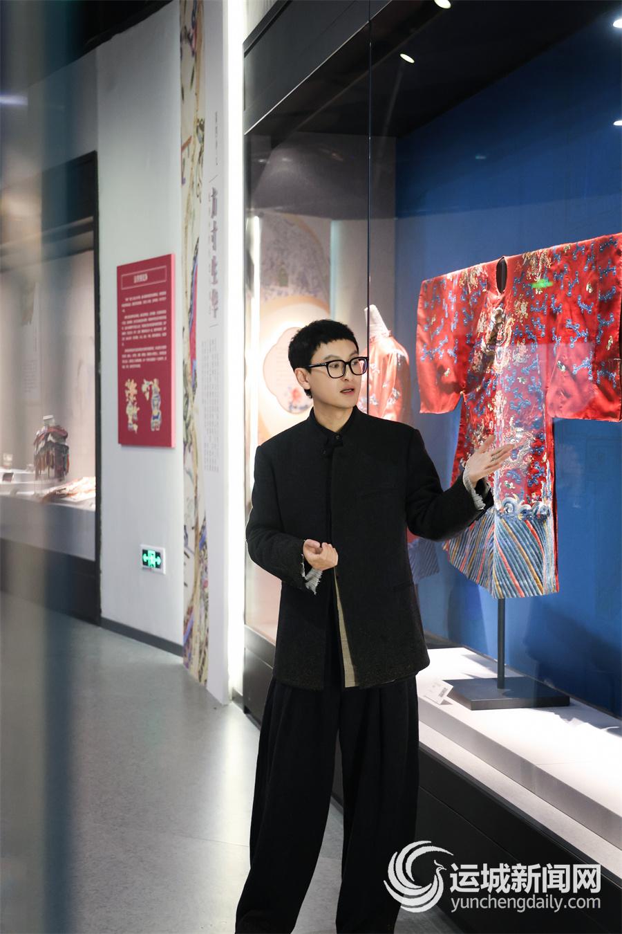 杨杰在运城博物馆“绮绣华裳——清代汉族女性服饰专题展”现场为观众讲解。