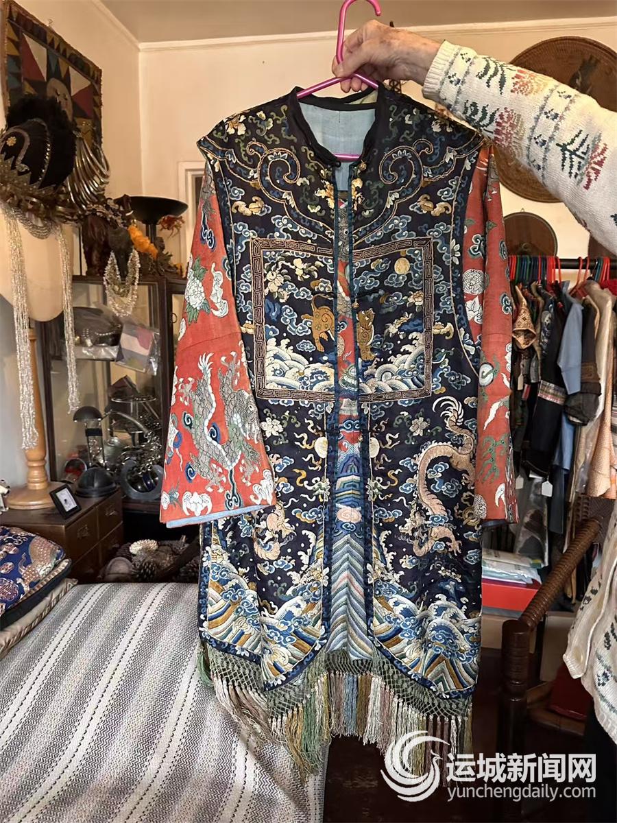 “那家店光线昏黄,几件样品随意摆放,我一眼就看到了那件霞帔,移不开视线。”那件服饰让他十分震撼,“上面的刺绣太精美了,颜色、工艺、材质十分精湛,又是中国的传统服饰,心底涌起说不清的喜欢。”询问店主来历,对方只是摇头。他当即买下,想带它回国。
