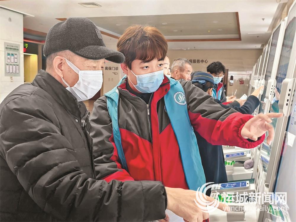 在接受了系统的志愿服务培训后,这些身着蓝色志愿马甲的青年志愿者迅速投入门诊服务一线,热情协助来院患者办理挂号、缴费、打印报告、取药等,用细致周到的服务为寒冷的冬日增添了一抹温暖。