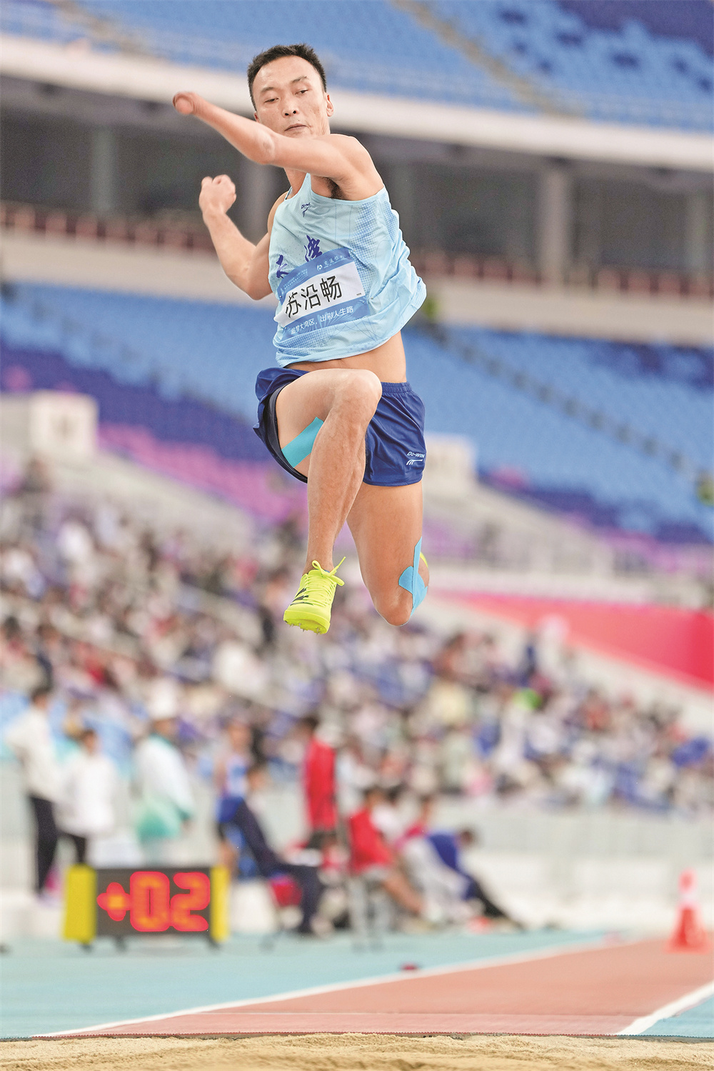 12月9日,天津队选手苏沿畅在男子跳远T47级决赛中。他最终获得第二名。当日,第十二届全国残疾人运动会暨第九届特殊奥林匹克运动会田径男子跳远T47级决赛在广州举行。