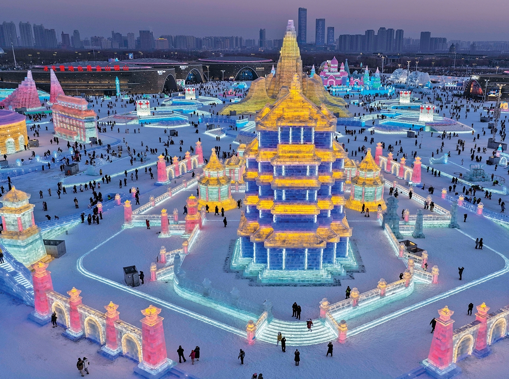 12月17日上午10时,第二十七届哈尔滨冰雪大世界正式开园迎客。园区占地面积达120万平方米,总用冰用雪量突破40万立方米,以历届之最的规模,打造一座冰天雪地的“童话世界”。