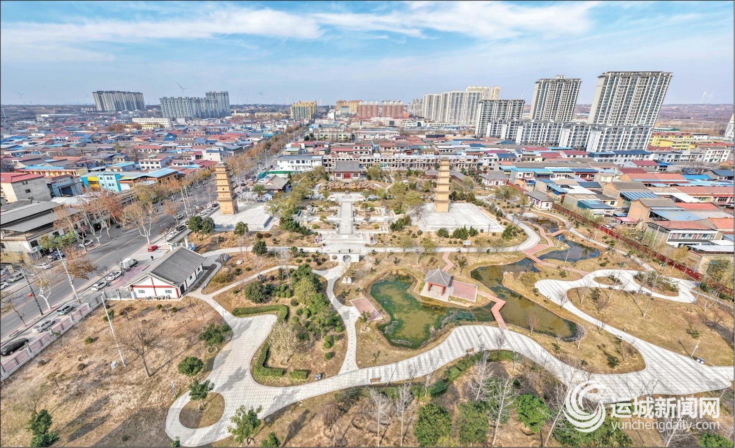 临猗县双塔公园冬日景色(12月24日航拍)。
