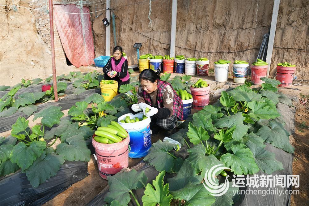 12月25日,山西维昌新型农业开发股份有限公司员工在闻喜县后宫乡阳庄村设施蔬菜基地收获西葫芦。