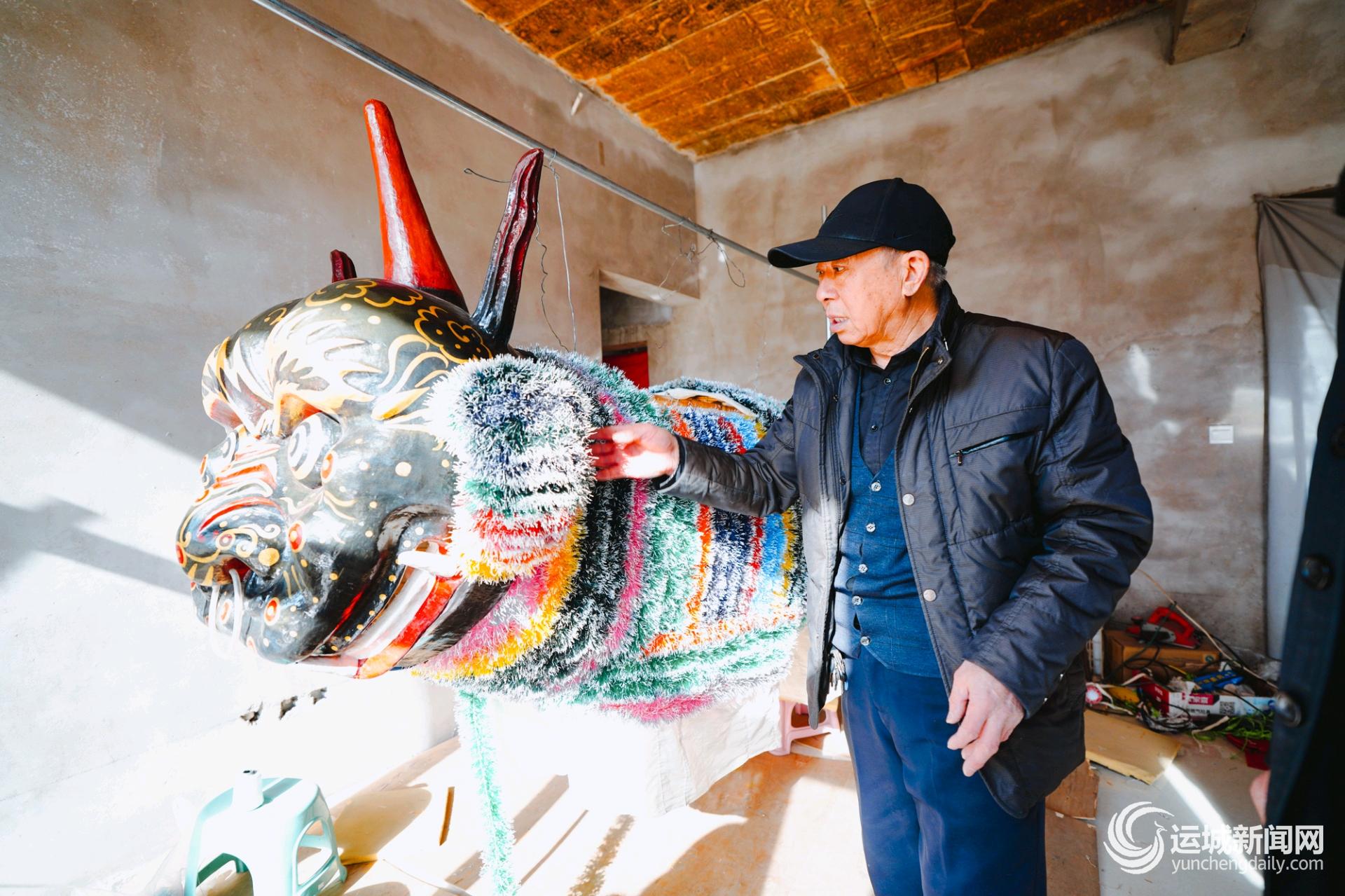 过去,从事这项事业的多为村里50岁以上的中老年男性。今年,王成林动员阳城村及附近村庄的妇女、年轻人加入。妇女们勤快细心,擅长针线活,利用闲暇时间到保护中心工作,既增加了收入,又提高了道具制作效率。与此同时,王成林积极响应“非遗进校园”号召,通过系统性教学与实践活动,将高跷走兽引入校园,激发青少年兴趣,培养新生代传承人,推动传统文化活态传承与创新发展。