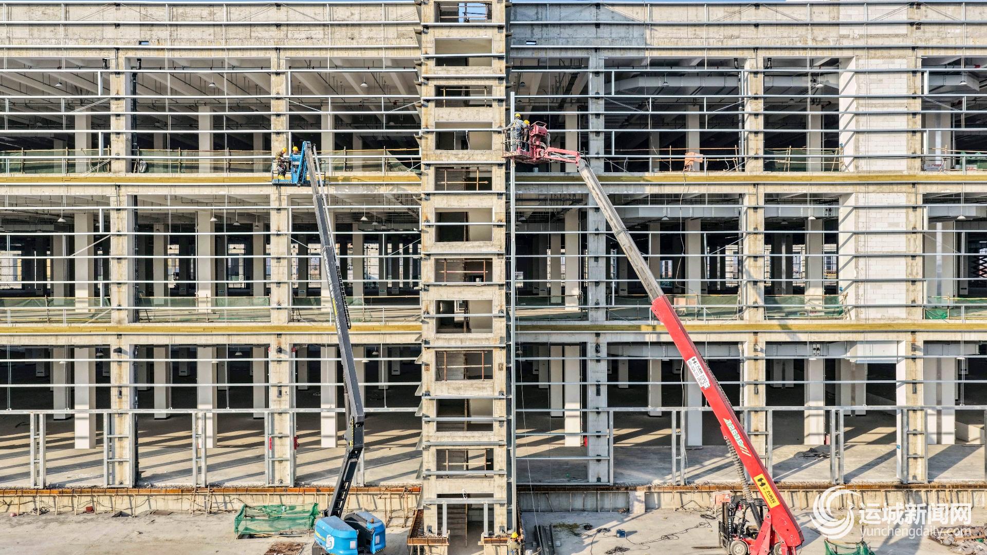 12月25日,位于新绛县的圆通晋南智创园项目建设现场,工人在进行外立面钢结构安装作业。