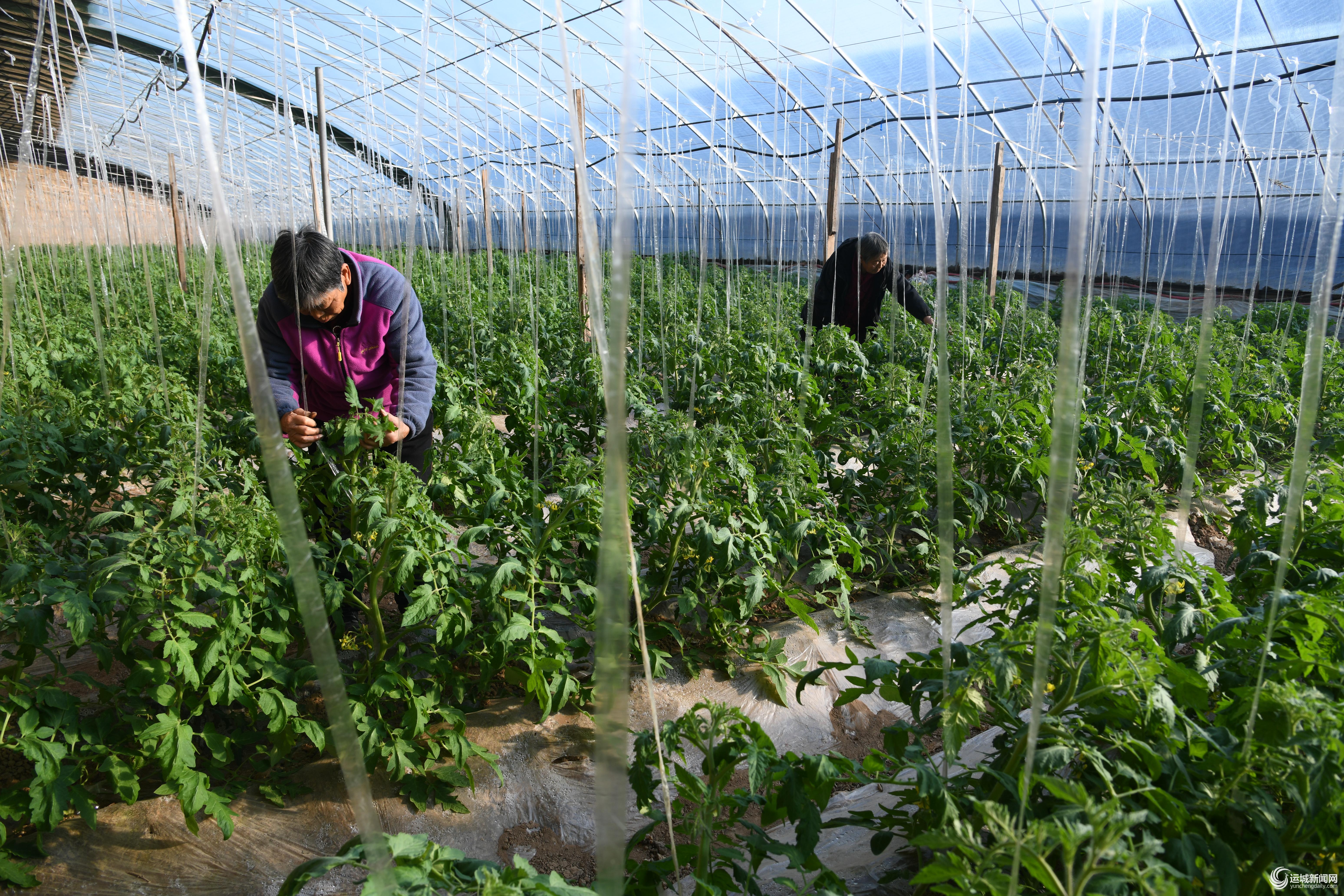 2025年12月31日,闻喜县郭家庄镇村民在大棚内管理西红柿苗。
