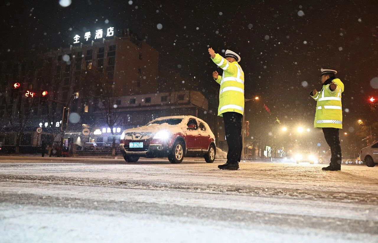 雪越下越大,路面逐渐湿滑。在各路口,民辅警们不仅指挥交通,还不时提醒驾驶员:“雪天路滑,请减速慢行,保持车距。”一句句温馨提示,如同寒夜里的暖流,温暖着每一位市民的心。