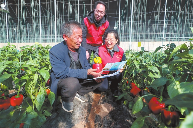 近日,在曲沃县史村镇张范村新型智能温室大棚内,市气象局工作人员为菜农送去精准气象预报。该局紧紧围绕冬季农业生产各关键环节,针对设施农业易受影响的灾害,分区域推出预警信息,助力农业产业振兴。