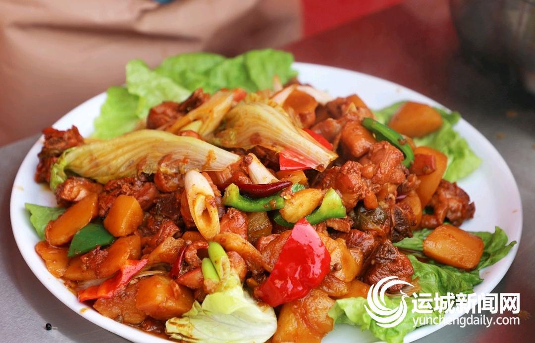 到了午餐时间,绛县大盘鸡更是“重头戏”,本地人吃大盘鸡的灵魂在于白糖、老陈醋与土豆泥的搭配。劲道拉条子裹满土豆泥,酸甜咸香交织,一口入魂。与大盘鸡齐头并进的还有炒鸡,“镕序特色炒鸡”和“山东鲁香炒鸡”平分秋色。