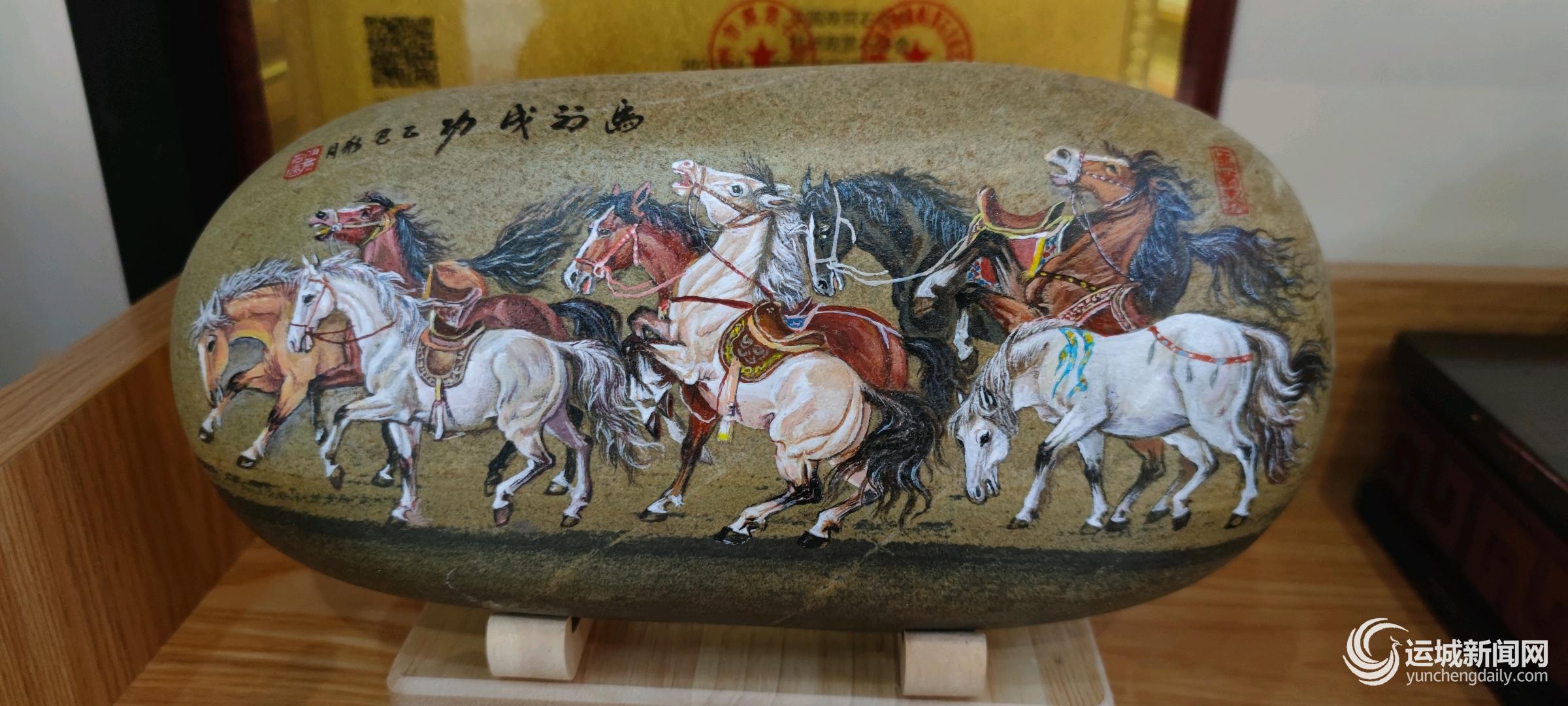 运城工艺美术馆展出的“马到成功”黄河石石画工艺品 记者 刘亚 摄