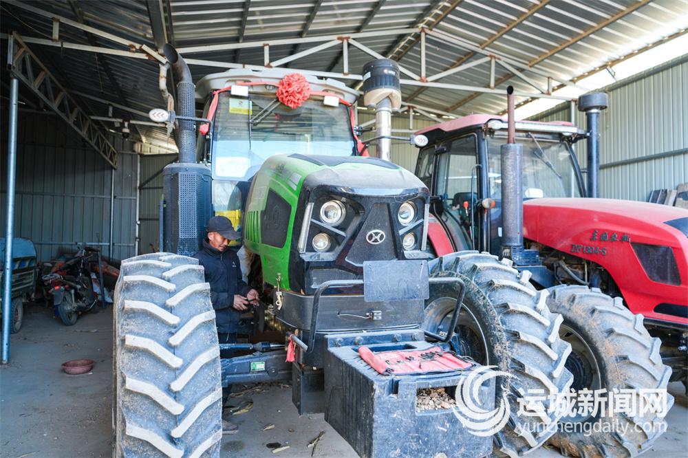 平陆县张店镇枣园村监测户张保生在检修拖拉机。记者 陈方斌 摄